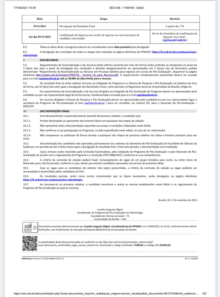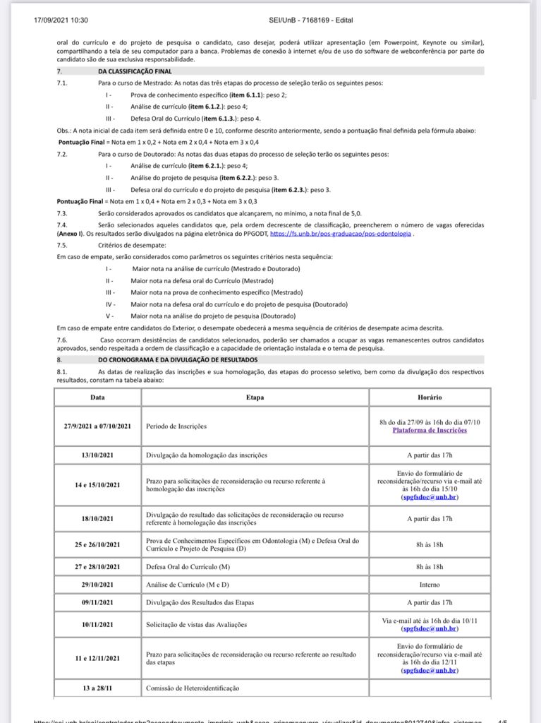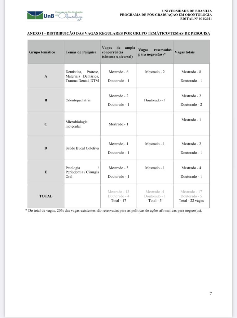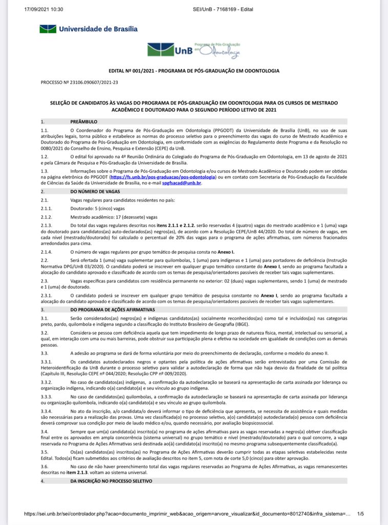 A Universidade de Brasilia divulga edital para Mestrado e Doutorado acadêmico .