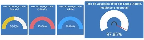 Atualmente, há 91 leitos para Covid-19 ocupados e dois vagos na rede pública. No entanto, entre as unidades disponíveis, as duas são neonatais, não havendo UTIs adulto livres. Outros seis leitos estão bloqueados.