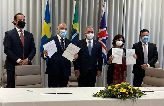A Fiocruz assinou, nesta quinta-feira (28/10), em cerimônia realizada na sede da AstraZeneca, em Cambridge (Reino Unido), declaração conjunta de compromisso para aquisição de Ingrediente Farmacêutico Ativo (IFA) visando à produção de 60 milhões de doses da vacina Covid-19 (recombinante) para compor as entregas da Fundação em 2022. O compromisso firmado pelas instituições tem por objetivo garantir uma ampla disponibilidade de doses da vacina ainda no primeiro semestre. Com a garantia do insumo importado, a Fiocruz poderá entregar, por meio do Instituto de Tecnologia em Imunobiológicos (Bio-Manguinhos/Fiocruz), 120 milhões de doses de janeiro a junho do próximo ano, das quais 60 milhões com o IFA nacional e 60 milhões com o novo acordo.