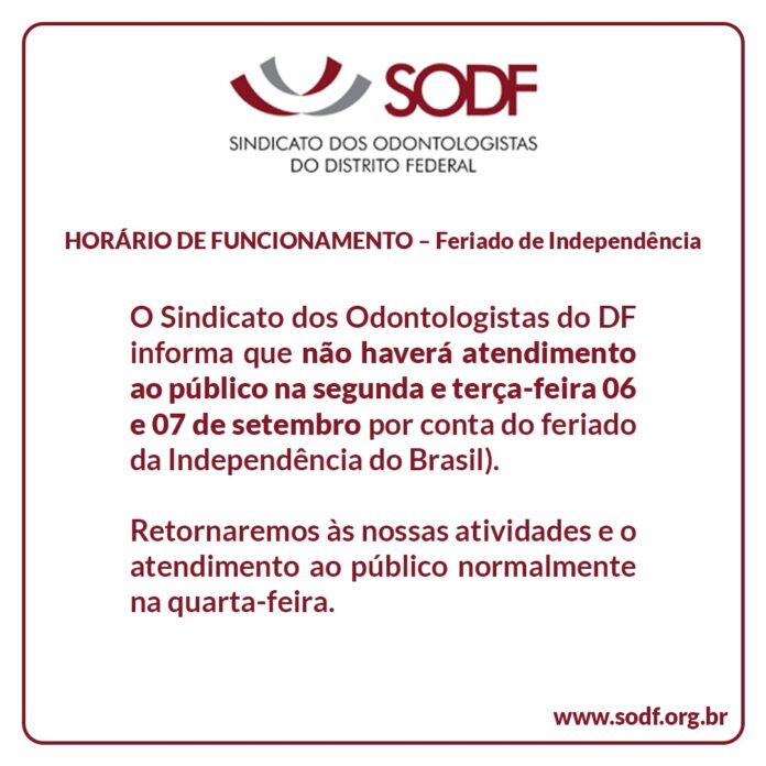 HORÁRIO DE FUNCIONAMENTO – Feriado da independência